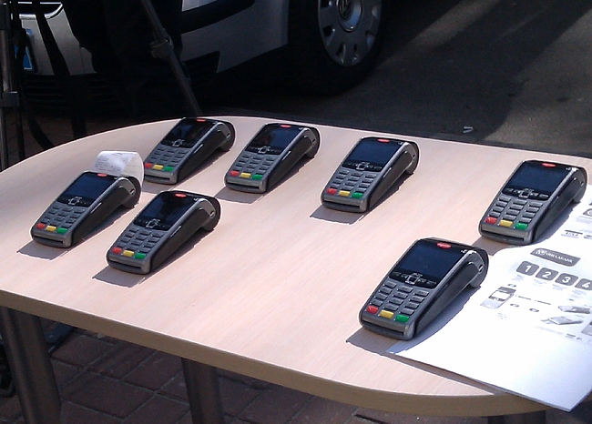 В понедельник 16 марта банкиры «Ощадбанка» передали гаишникам безоплатно 8 платежных терминалов. Заметим, что подарок этот ценный: ведь один такой терминал стоит около 13 тысяч гривен. Несколькими днями ранее стражи порядка на дорогах получили первые 5 аппаратов. Итого, в 13 банковских терминалах водителям теперь можно оплатить штраф. Расположены пока что терминалы на стационарных постах ГАИ - в Коптях, Вертиевке, Новоселовке. Всего же планируют, что в области будут функционировать более тридцати таких терминалов (28 - мобильных и 5 стационарных). Все они будут находится на обслуживании «Ощадбанка».