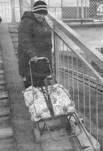 «Хух», «О Боже», «Долізли», — зітхають жінки та чоловіки, піднімаючись мостом із важкими сумками.