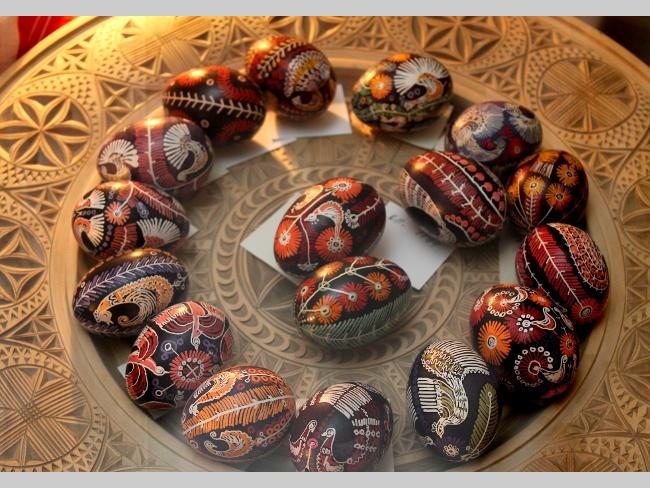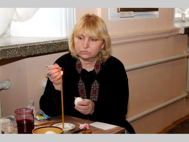 – Яйца такого большого размера мы еще не расписывали. Есть свои сложности. Обычное куриное яйцо мы держим в руках, а это надо вращать на каркасе, и намного труднее наносить краску. Ее мы наносили в четыре слоя. Само яйцо из стекловолокна, краски использовали акриловые, а в завершении работы мы его покроем акриловым лаком, – рассказала Татьяна Стадниченко.
