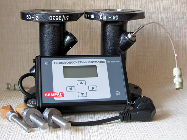 Ультразвуковой теплосчетчик – прибор учета тепловой энергии на базе ультразвукового расходомера, отличается незначительным гидравлическим сопротивлением и отлично измеряет расход чистого теплоносителя. В случае протекания сильно загрязненного теплоносителя, либо появления воздушных пузырей в потоке, теплосчетчики с ультразвуковыми расходомерами определяют потребленное тепло с существенной погрешностью. Кроме того, ультразвуковые датчики расхода счетчиков тепла чувствительны к отложениям накипи на внутренних поверхностях расходомерного участка.