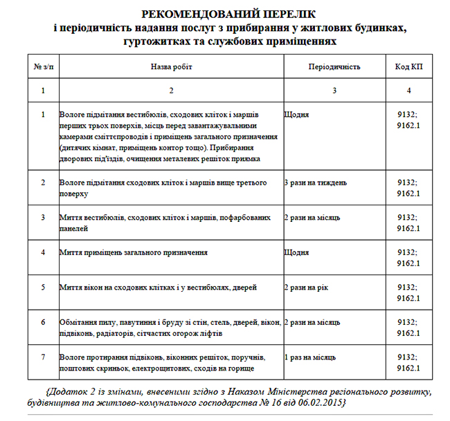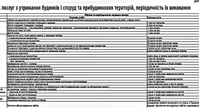 Мы сравнили периодичность ряда услуг, прописанных в Приказе с тем, что жителям Чернигова предлагают наши ЖЭКи и были просто в шоке от увиденного. Так, например, жителям Чернигова предлагают проводить влажное подметание лестничных клеток и маршей один раз в неделю. В то же время Минрегион настоятельно рекомендует влажное подметание лестничных маршей до 3-го этажа проводить ежедневно, а выше 3-го этажа – 3 раза в неделю.