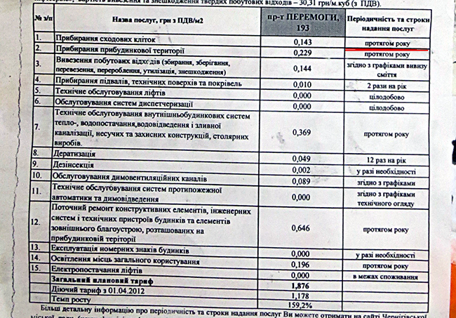 Как ЖЭКи доводят до населения новые тарифы, можно посмотреть на объявлениях, расклеенных на каждом подъезде многоквартирного дома. Экономическое обоснование тарифов не соответствует требованию законодательства. А указанная в информационной листовке периодичность и перечень проведения услуг вообще не выдерживают никакой критики. Ну, как, например, объяснить, уборку лестничных клеток «на протяжении года»?