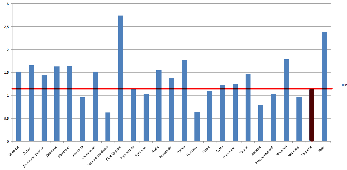 Диаграма уровня тарифов на содержание домов и придомовых территорий по состоянию на 1 марта 2015 года по областным центрам Украины выглядит так: