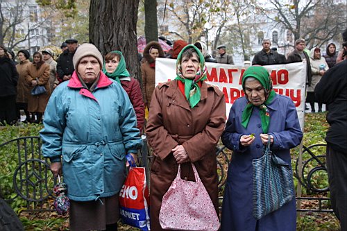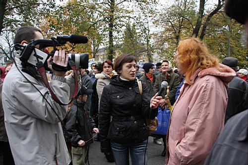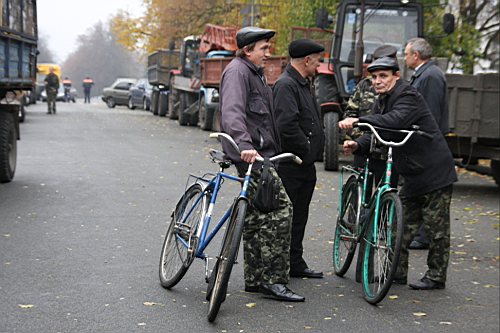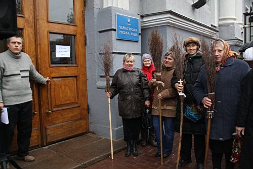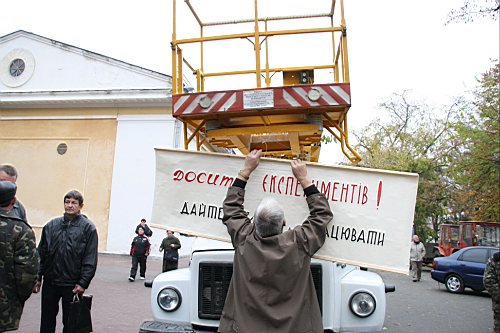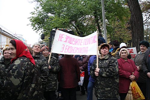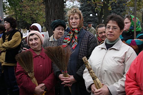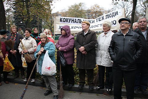 Утром, 31 октября дорога, ведущая к горсовету, была заставлена тракторами, машинами аварийных служб и прочей техникой ЖКХ города. Работников коммунальной службы собрали под зданием горсовета в противовес митингующим, пришедшим протестовать по призыву коммунистов и ПСПУ против установленных цен на услуги. В общем-то, перед зданием горсовета все прошло тихо-смирно. Это, что касается "выяснения отношений" между митингующими группами – их просто не было. А в целом – микрофоны, выступления, пламенные речи…