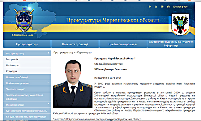 Сегодня, на официальном сайте прокуратуры области в разделе «Руководство» еще висит фото Дмитрия Чибисова, но уже ходит информация о том, что прокурор области написал заявление и по собственному желанию и покинул прокуратуру региона. Хотя, что у нас происходит «по собственному желанию»? Утверждают, что Дмитрий Чибисов, хотя и остался в системе прокуратуры, но не пошел не на повышение. Если неофициальная информация подтвердится, то срок прерывания Дмитрия Чибисова на должности прокурора Черниговской области будет, наверное, самым коротким в истории прокуратуры региона.