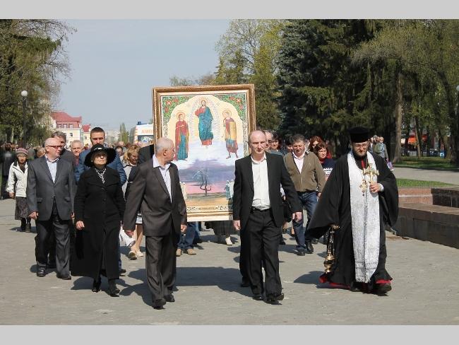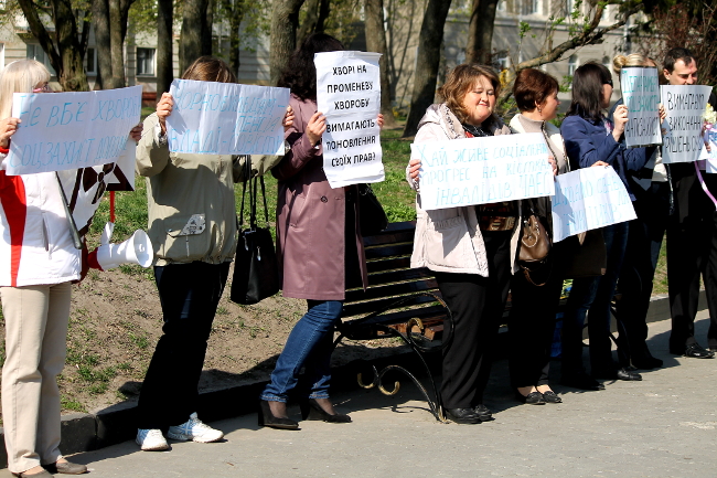 Немногочисленная группа пострадавших от Чернобыльской катастрофы – больные лучевой болезнью, которых незаконно лишили статуса пострадавших, вышли на акцию протеста. После митинга к ним подошли глава облгосадминистрации Валерий Кулич и депутат городского совета Олег Русин. Последний предложил им пройти с ним, и всем кому положено, получить вкладыш к удостоверению пострадавшего. Но понимания у протестующих это предложение не нашло.