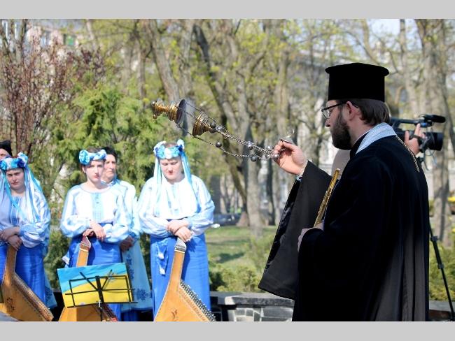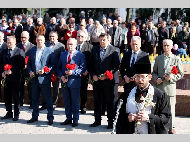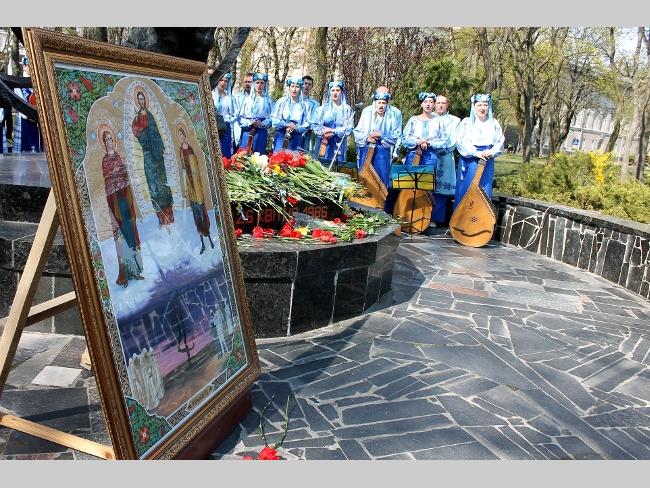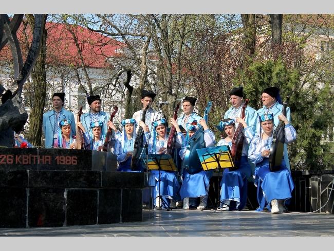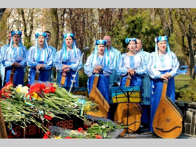 Заупокойную литургию по жертвам аварии на ЧАЭС провел настоятель храма Святой Великомученицы Екатерины протоиерей Роман. К Памятному знаку «Героям Чернобыля» участники мероприятия возложили цветы, и Минутой молчания почтили память тех, кто первым принял на себя удар страшной катастрофы. В исполнении капеллы бандуристов имени Остапа Вересая прозвучала «Молитва за Украину».
