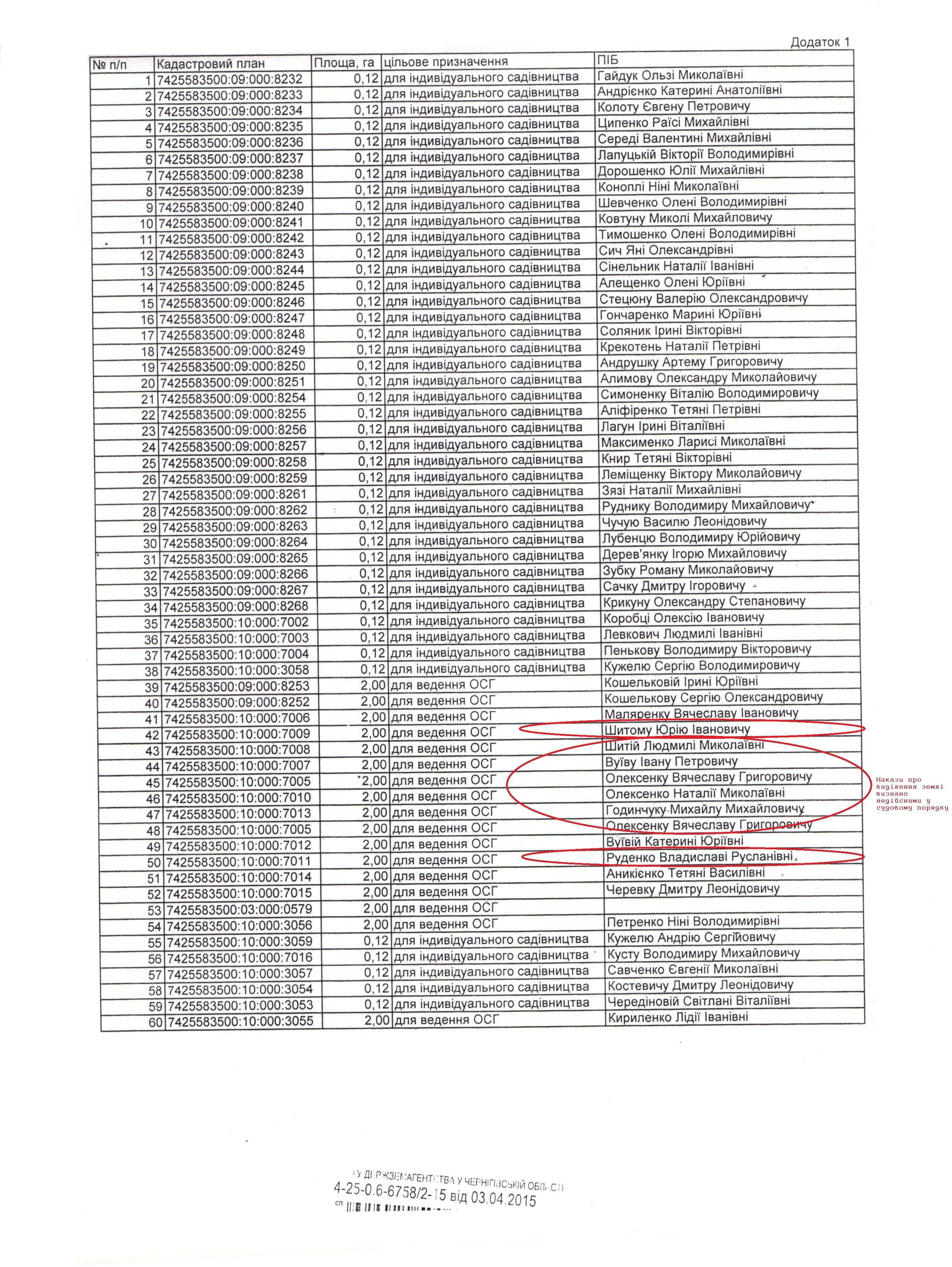 Публікуємо повний список осіб, які отримали у власність луги біля водоймищ поблизу села Брусилів.