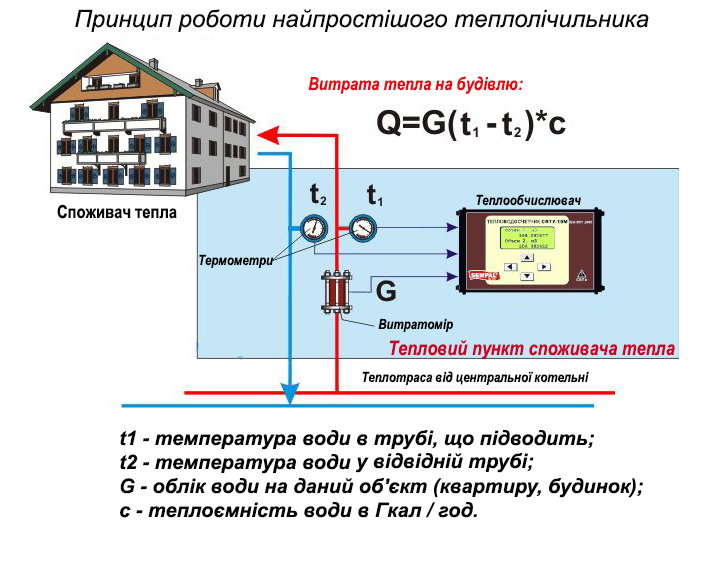 Через особливості проектування радянських будівель, а також через свою, відносно високу вартість, наявні на ринку лічильники тепла розраховані, в основному, на окремі багатоквартирні будівлі і встановлюються в спеціально обладнаних приміщеннях – теплопунктах. І хоча існуючі прилади обліку тепла різняться по способах вимірювання, по вартості та зручності у використанні, принципи роботи усіх лічильників – тотожні.