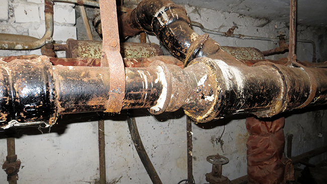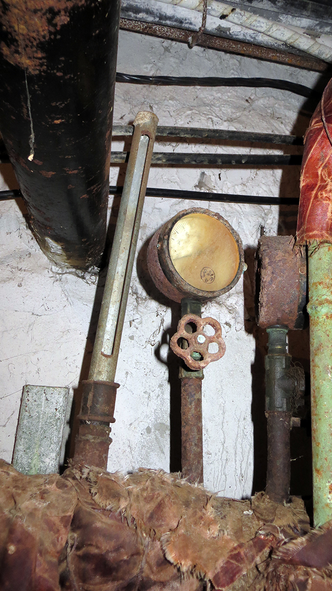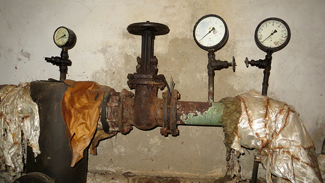На фото: Судя по внешнему виду, измерительные приборы и системы отопления и канализации не обслуживались годами