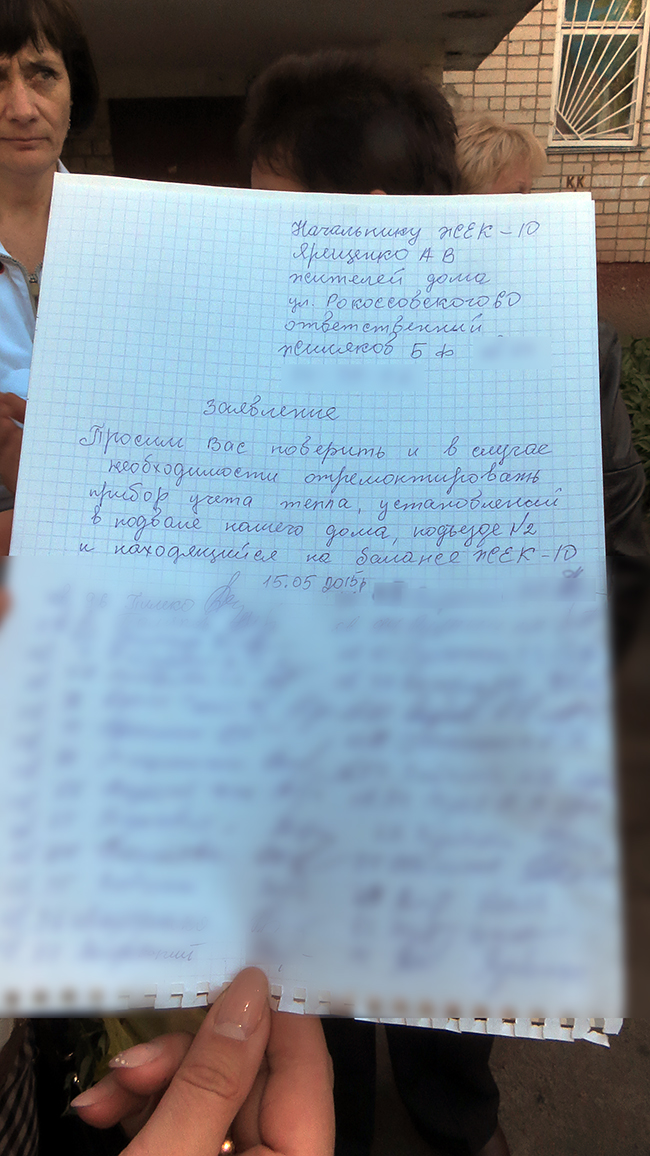 Жильцы дома №60 по улице Рокоссовского пытаются восстановить учет тепла в своем доме. По вине руководства КП «ЖЭК-10» счетчик, установленный в этой девятиэтажке, еще в 2011 году не прошел очередную поверку, и жильцы 108 квартир начали платить по нормативу. Но сегодня платить по норме – дорого, а покупать новый прибор учета тепла – накладно...