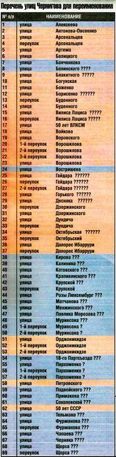 Какие улицы, в соответствии с этим законом, переименуют в Чернигове?