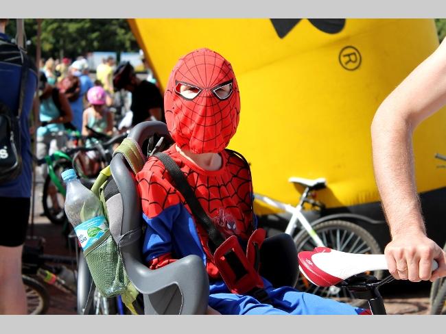 – Велосипед – это не только средство передвижения, а это еще и такая штука, которая может приносить позитив и радость всем. Вот в этом году и решили удивить всех яркостью. Видите, у нас здесь есть и супермены, и большие пауки, и исторические персонажи. Программа у нас обширная, рассчитанная до шести вечера, и надеюсь, что мы побьем прошлогодний рекорд по количеству участников, – говорит Максим Цирулин, руководитель велосообщества «Лайба».