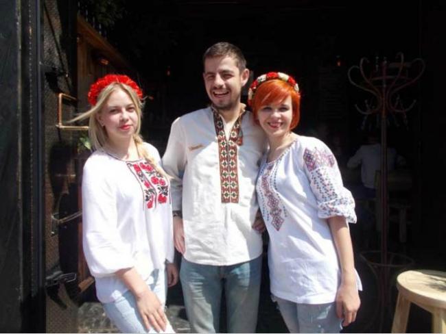 Приємно бачити, що в чернігівських офіційних установах теж одяглися святково, до акції приєдналися школи, садки, лікарні, місцеві виші… Не проігнорували національний флешмоб і офіціанти одного з кафе біля Красної площі. Знайомтесь – Юлія, Василь та Олена.