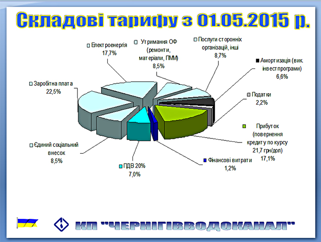 Другой вопрос: как многомиллионный кредит повлиял на роль тарифов на водоснабжение и канализацию в Чернигове? Насколько эффективно были использованы деньги? И как это отразилось на качестве услуг предоставляемых предприятием? На эти вопросы мы попробовали найти ответы в докладе Александра Шкиня "О развитии коммунального предприятия «Чернигивводооканал».