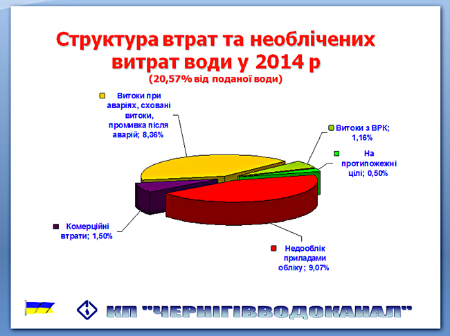 Александр Шкинь заявляет, что предприятие смогло добиться наилучших в Украине показателей по неучтенным потерям воды. Если, например, в Кировограде потери доходят до 54%, то в Чернигове – 20,6% (минимальный показатель по Украине).