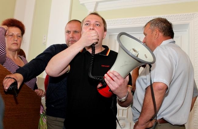 «Граждане, товарищи, смотрите. Сейчас все вместе, дружно, заходим в горсовет, поднимаемся на второй этаж и все вместе смотрим, как работают депутаты, за что они там голосуют», -палко гукав у мегафон Андрій Глаба 31 липня 2014 року до мітингарів перед входом у міськраду, де саме тривало засідання сесії.