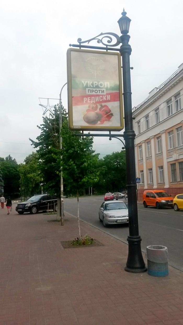 Ситилайт в центре города с плакатом "Укроп против редиски"
