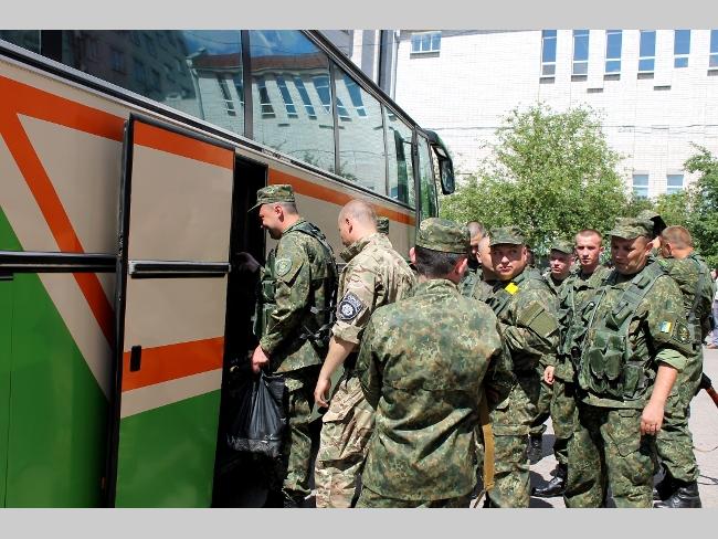 Звучит команда, и бойцы загрузив в автобус снаряжение, простившись с родными и близкими, отправились на восток Украины.