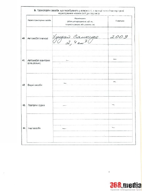«Паркетный внедорожник» Hyundai Santa Fe 2009 года записан на жену Кульбако. Видимо, муж добирается или на служебной машине или на трамвае. Вероятно, талоны на бензин, переданные ему в качестве взяток, он хранил для своей благоверной.