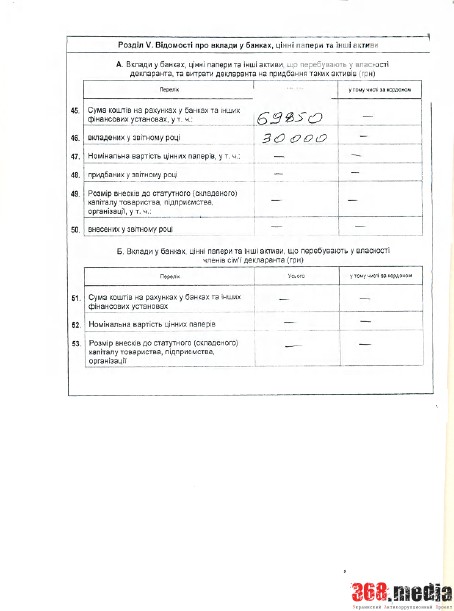 Жена, конечно же, побогаче. Она владеет земельным участком в два гектара, дачным домом (33,6 кв. метра), а также квартирой (65 кв. метра) и другой недвижимостью (433 кв. метра). В какую сумму обходиться семье Кульбако содержание вышеперечисленного имущества остается загадкой, так как в налоговой декларации по этому пункту стоит многозначительный прочерк. Сумма на банковских счетах Виктора Кульбако составляет почти 70 тыс. гривен, из которых 30 тыс. гривен появились только в прошлом году.