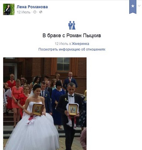 Избранницей молодого капитана стала 22-летняя Елена Романова из батальона «Чернигов». На своей странице в социальной сети в Фейсбук, девушка выложила фото с торжества и празднования девичника в Киеве.
