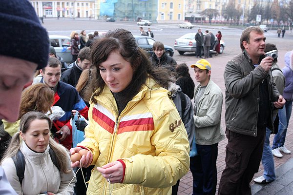 Самый первый конкурс был с яйцами. Необходимо было обежать вокруг Драматеатра с привязанным к поясу пакетом с яцами и чтоб они при этом не разбились. Еще было задание приготовить из этих яиц яичницу для судей. Ребята забегали в супермаркеты и в квартиры своих друзей, которые жили неподалеку, и просили, чтоб те им поджарили яйца.