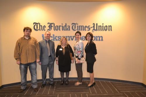 Черниговцам предстояло познакомиться с редакцией одной из самых крупных газет штата Флорида - Florida Times Union, размещенной в городе-миллионнике Джексонвилль. Издание имеет также сайт http://jacksonville.com. Помимо обучающих бесед с ведущими специалистами издательства была и культурная программа. На следующее утро после прибытия украинскую группу повезли в красивый туристический городок Сент-Агустин, для которого издательство также делает местную газету. В этот же день черниговцы впервые увидели океан. Гидом и водителем стал ни много ни мало главный редактор Florida Times Union – Френк Дентон. Город наполнен туристами, на улицах множество ресторанчиков, кафе, ювелирных и антикварных магазинчиков а также арт-галерей.
