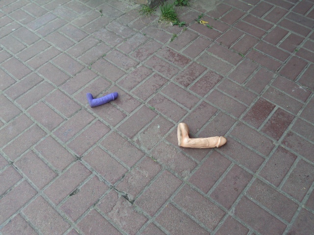 Резиновые изделия, которые остались возле пресс-центра после избиения кандидатов в народные депутаты Украины по 205 округу