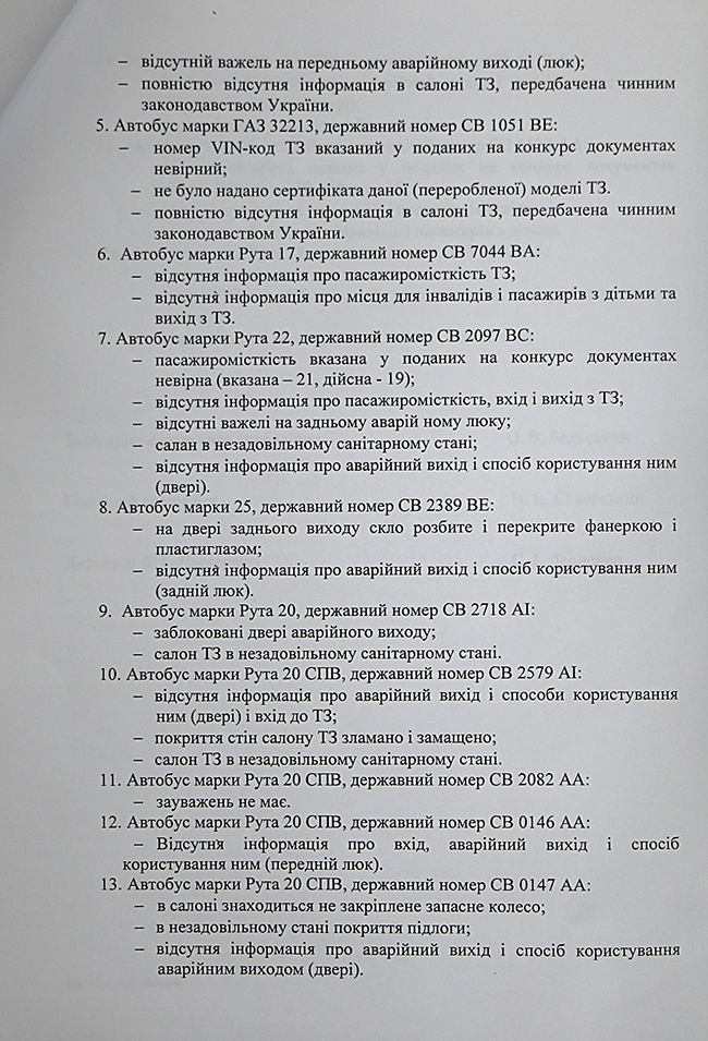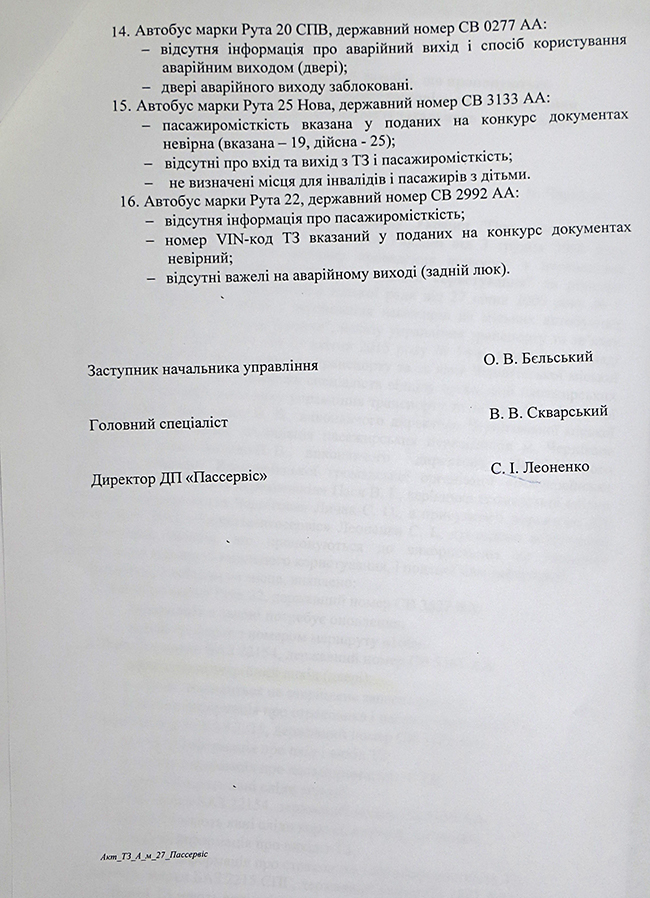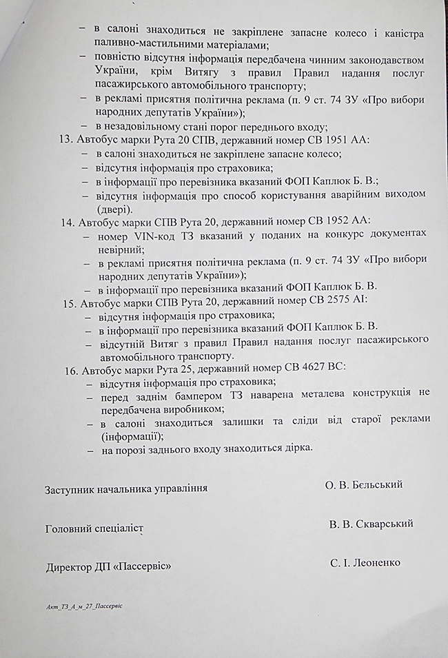 Согласно актам осмотра транспортных средств победить на конкурсе не могло ни одно предприятие. Но, тем не менее, кто-то из членов комиссии заявил: «Давайте выбирать лучшего из худших!». Расчет был простой: даже при таком подвижном составе победить должно было бы ДП «Пассервис».