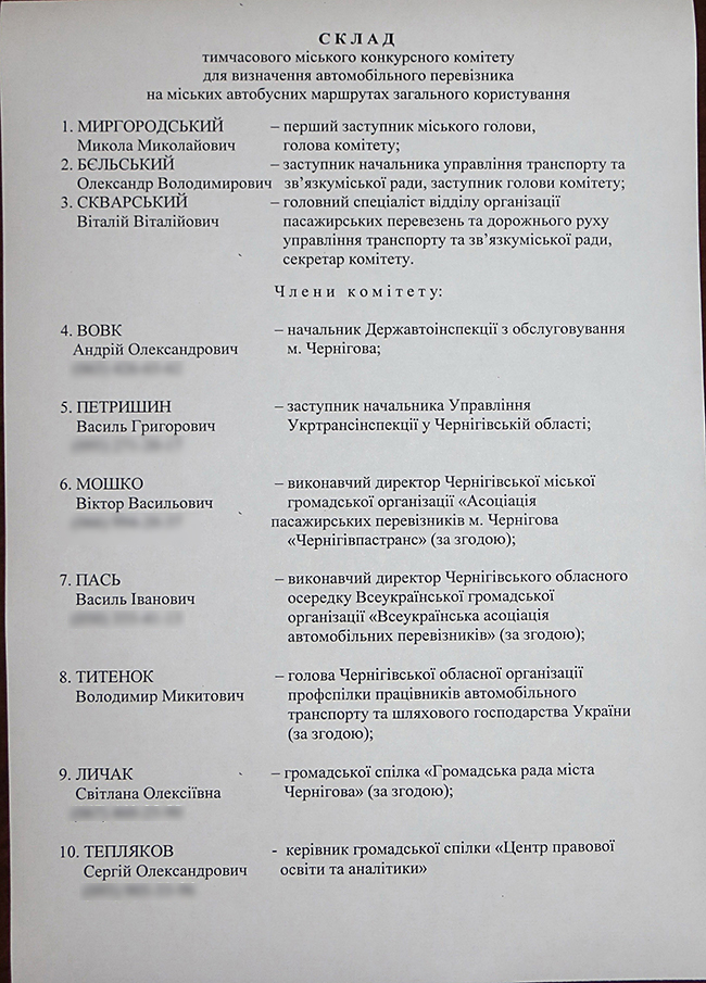 Возможно, обжаловать состав такой комиссии в судебном порядке перевозчикам и будет сложно, но с моральной тачки зрения подбор людей, решающих судьбу ключевого маршрута Чернигова выглядит довольно сомнительным.