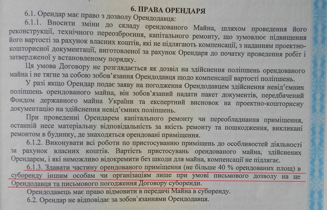 Ще у 2014 році ми писали, що ресторатори, які орендують приміщення по Проспекту Миру, 20 сплачують невелику орендну плату, як за розміщення дитячих кафе, та буфетів (без реалізації горілчаних виробів) за ставкою 8%. В той час як до деяких закладів мала б застосовуватись ставка по оренді не нижче 20%. Договори оренди з усіма орендаторами було укладено довгострокові:
