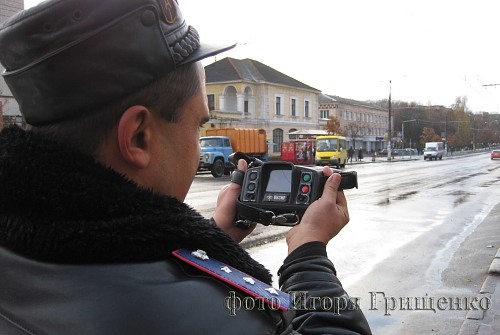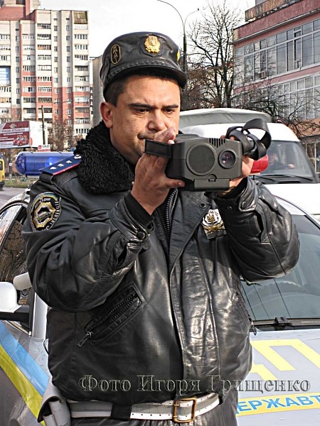 Понедельник – а город практически пустой. Наверное, все водители хотят переждать первые дни введения новых «правил игры» на дорогах. На полупустом проспекте Победы, фактически прямо под зданием «Облэнерго» - наряд ГАИ. В руках у них какая-то интересная штучка: радар-не радар, да и на фотоаппарат с камерой не сильно похожа.