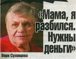 — Сын Игорь живет в Крыму, — рассказывает Вера Павловна. — Отставной военный, сейчас немного занимается бизнесом. За день до этого сын поехал по работе в Херсон. Утром в субботу, еще шести часов не было, звонит городской телефон. В трубке умирающий голос: «Мама, я разбился. Нужны деньги на операцию». Раньше он никогда в жизни у меня не просил, только помогал. «Я сделал аварию, — продолжал голос в трубке. — Человек, в которого я въехал, при смерти. Ему тоже нужна операция». Сказал, что нужно четыре или шесть тысяч долларов.