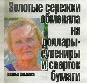 2 августа 65-летняя Наталья Хоменко отдала на улице золотые сережки. В залог долларов. Доллары оказались липовыми.