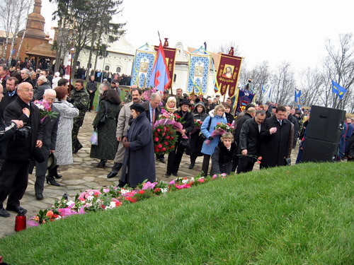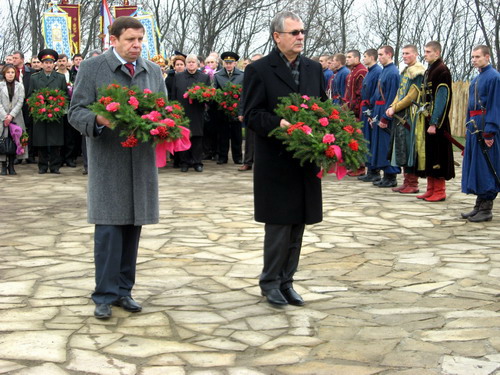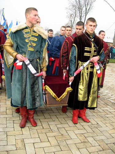 Тут були і козаки, і бандуристи, і греко-католицькі монахині, і навіть ветерани УПА. Єпископ Чернігівський і Ніжинський Української Православної Церкви Київського Патріархату Іларіон освятив новозбудовану Замкову церкву Воскресіння Господнього, що знаходиться в середині відреставрованої цитаделі, та взяв участь у перепохованні останків жертв. Труни з віднайденими останками оборонців, оповиті китайками, згідно з козацьким звичаєм, опустили в крипту, що знаходиться в середині храму. По кожній відспіваній козацькій душі лунав постріл із гармати.