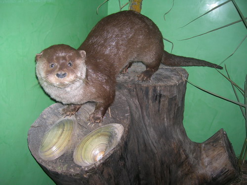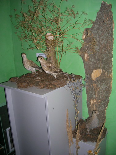 По словам научного сотрудника краеведческого музея Ольги Степаненко, один из самых старых экспонатов коллекции под названием «Флора і фауна Прилуччини» — чучело кабана, которому больше 100 лет. Оно находилось еще во дворце в Сокиринцах, так что мы можем считать его не только краеведческой, но и исторической реликвией. Остальным чучелам примерно по 30 лет. Перед новосельем появились и новые экспонаты: чучела выдры, лося (но только его огромная голова), фазана (очень красивая, яркая птица) и две небольшие забавные птички-пчелоедки. Симпатичный енот — тоже новый экспонат и очень редкое на Черниговщине животное, занесено в «Красную книгу». На этапе изготовления - чучела бобра и ондатры. Самое сильное впечатление на посетителей производят, пожалуй, оскаленные волки. Мне еще понравились забавные белочки, журавли, косуля.