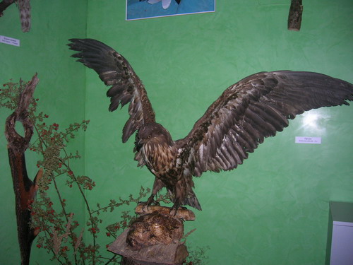 Любопытно, что большинство чучел изготовлено местными умельцами (их называют таксидермистами) и стоят недешево. Фазан, например, приобрели за 570 гривен, а в столице чучела животных и птиц стоят намного дороже! Голову лося с ветвистыми рогами музейщики приобрели за 3 тысячи, а просили за нее больше четырех. Из эксклюзивных экспонатов увидим еще орлана — очень редкую птицу-хищника. Его встречали на этой земле во время пролета несколько десятков лет назад.