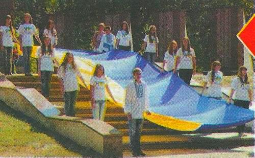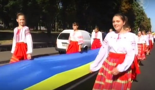 На День народження країни ічнянці в рамках акції «Єдина країна -єдиная страна» розгорнули 33-метровий стяг, який тільки-но повернувся з обласного центру.