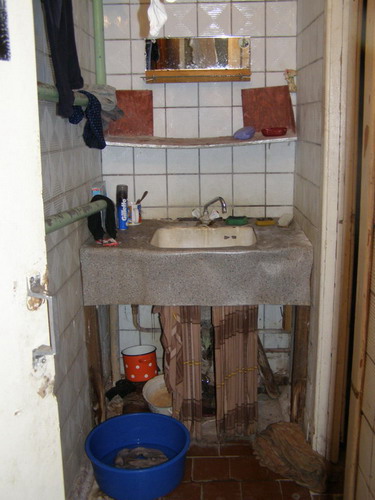 После экскурсии по комнатам мы отправились дальше. Как оказалось, некоторые санузлы таки отремонтировали и установили новенькую сантехнику, недорогую, но качественную и аккуратную. Контраст с увиденным ранее был настолько сильным, что сразу было понятно: починили ровно столько, на сколько денег хватило….