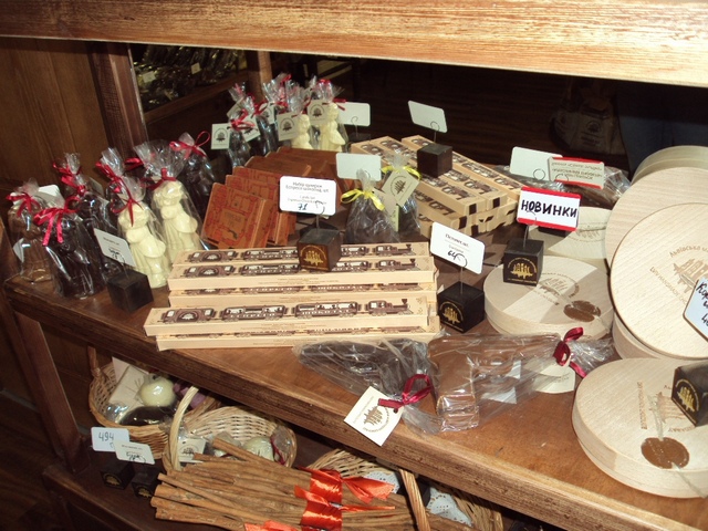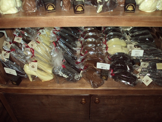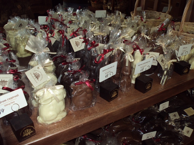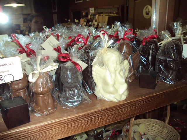 Шоколад виготовляюсь у Львові з бельгійської сировини. Весь шоколад виробляють не на фабриці, а вручну, тобто це мануфактурна робота. Раз на тиждень, кожної середи, зі Львова приїздить авто з шоколадом у спеціальному холодильнику. Зазвичай всі цукерки розкуповують за тиждень, хоча термін придатності у них - один місяць. Що стосується інших виробів, то термін придатності фігурок з чорного шоколаду - 7 місяців, молочного - 6 місяців і білого - 4 місяці. Але їх, зазвичай, розкуповують набагато раніше.
