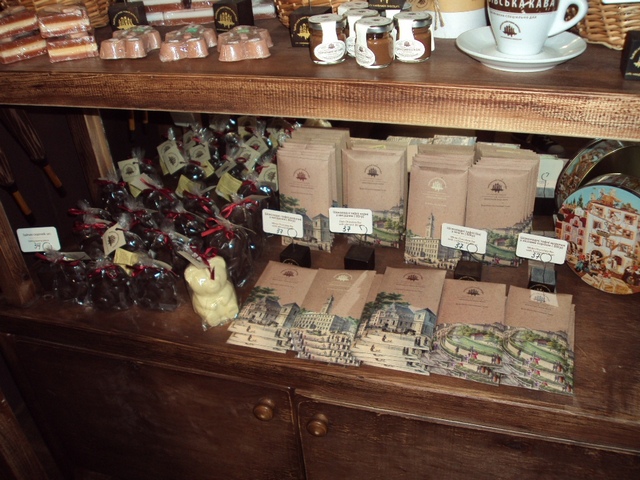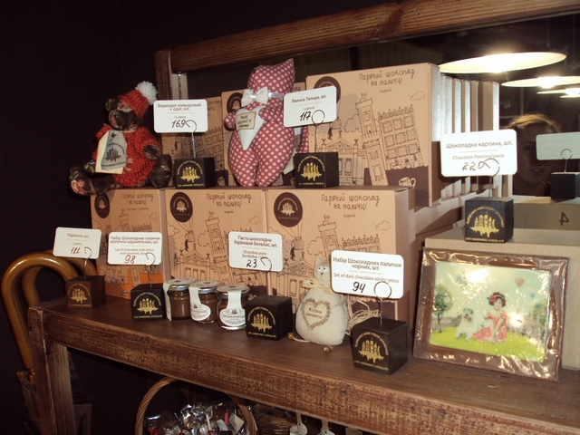 У майстерні у нас також продається мелена кава та кава в зернах, є українські книжки та сувеніри. Є навіть шоколадне мило. Для шоколаду є спеціальні паперові та металеві коробочки, тому той, хто хоче зробити комусь солодкий подарунок може порадувати людину не лише неповторним смаком нашого шоколаду, а і оригінальною упаковкою для нього.