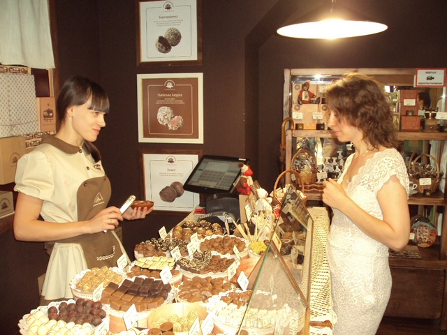 Справа в тому, що сказати однозначно, що тому чи іншому шоколаду відвідувачі надають перевагу не можна. Адже кожен відвідувач має свої смаки та уподобання. Ті, хто любить солодке, обирають для себе молочний або білий шоколад, а ті, кому до вподоби шоколад з мінімальною кількістю цукру купують гіркий шоколад. Те саме стосується і цукерок. Багато хто вже скуштував всі наші цукерки і навіть обрав для себе улюблену. Є і такі відвідувачі, які в захваті від нашої кави та коктейлів. Тобто в даному випадку смаки у всіх індивідуальні і якихось чітких тенденцій не спостерігається. Можу лише сказати, що дівчата віддають перевагу молочному шоколаду, а чоловіки - чорному.