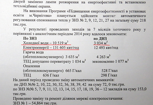 Вообще-то, складывается впечатление, что в управлении образования специально по нескольку раз отчитываются перед громадой Чернигова за одну и ту же проделанную работу. Наверное, считают, что «повторение – мать учения». А вот цифры по экономии вызывают большие сомнения. Ведь каждый год экономить такие объемы ресурсов по сравнению с предыдущим годом – просто не реально!