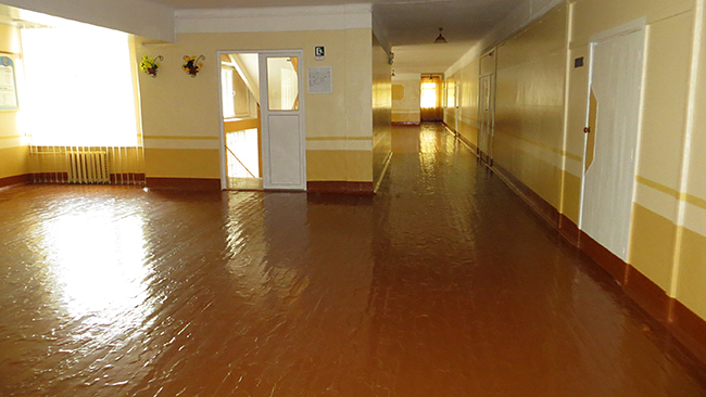 Посетив школу, мы обратили внимание на полы. В школе все полы – деревянные. За время работы школы они утратили свою былую ровность. Но школа самостоятельно не может привести полы в порядок. Вот и остается, что только красить. Правда, выкрашены полы, как говорится, на славу!