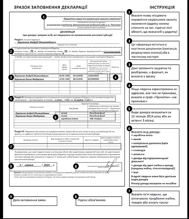 В департаменте соцзащиты утверждают, что каждая семья в Черниговской области до 1 сентября 2015 года повторно получит бланки заявления и обновленной декларации, следует подавать для оформления жилищной субсидии. Вместе с тем, можно использовать и действующие на сегодня бланки документов.