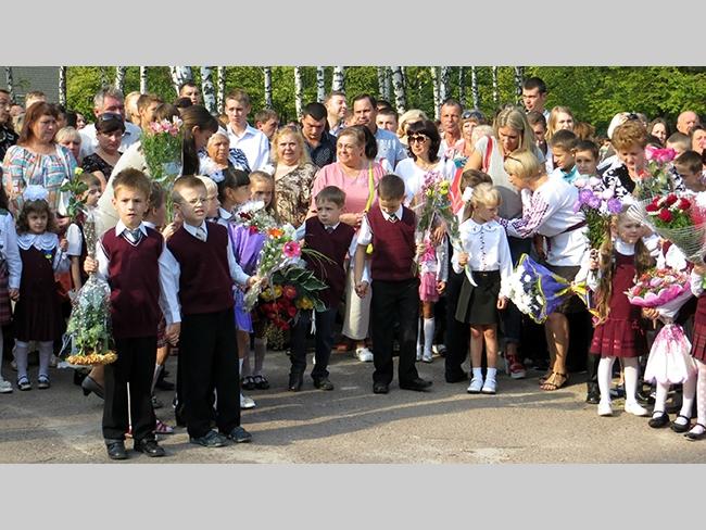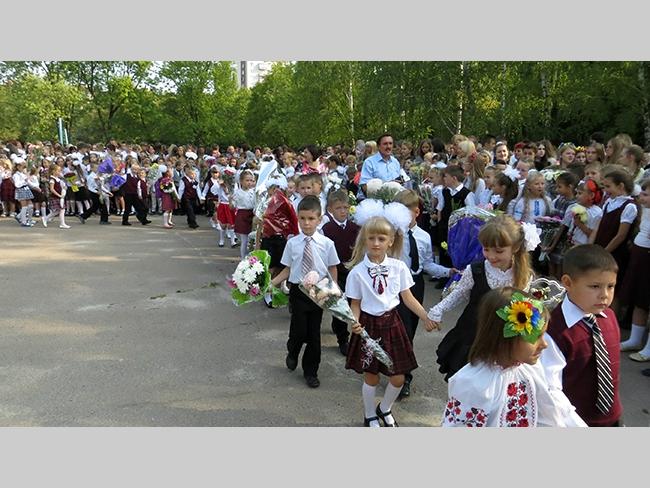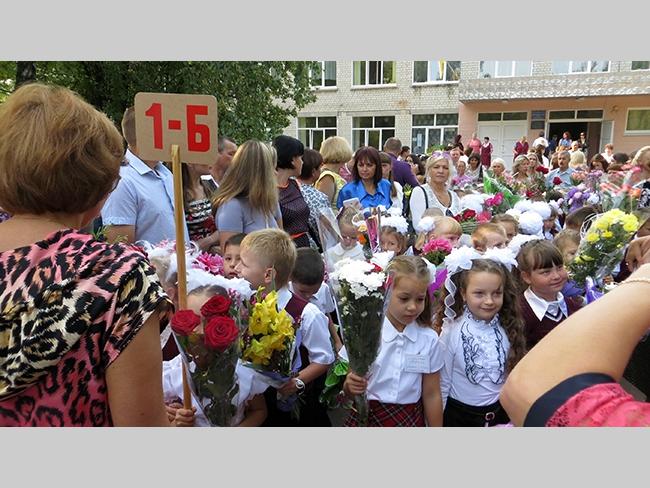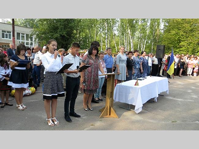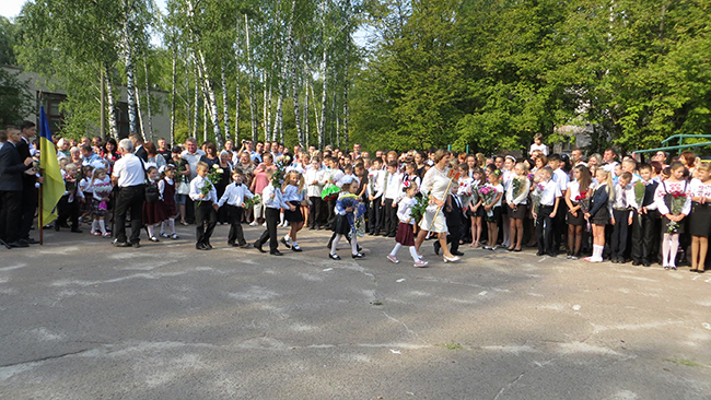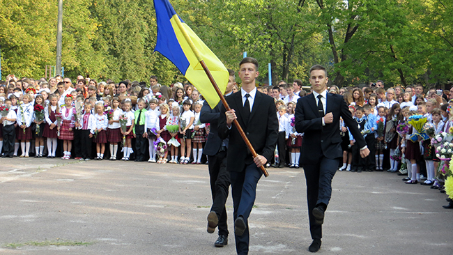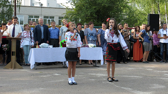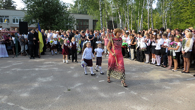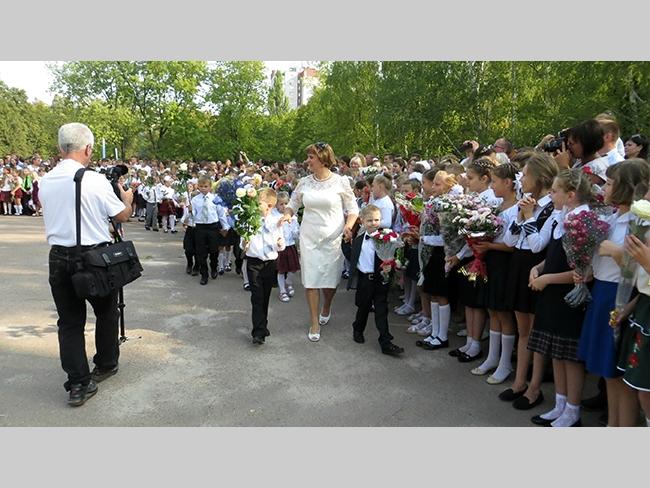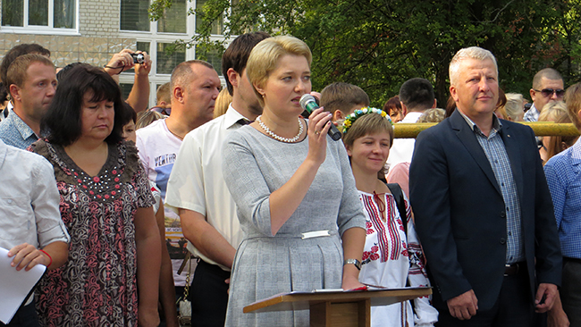 Традиционный вынос Флага и исполнение Гимна Украины. Слово предоставляют директору лицея Виктории Пекур. После поздравлений в адрес первоклассников и учеников лицея, родителей и учителей, Виктория Пекур сообщила, что на линейку с подарками пришли представители народных депутатов и политических сил. Примечательно то, что очередность, в которой были названы фамилии гостей, как показалось, соответствовала рейтингу политических сил в нашем городе.