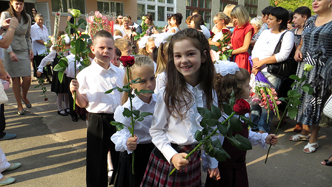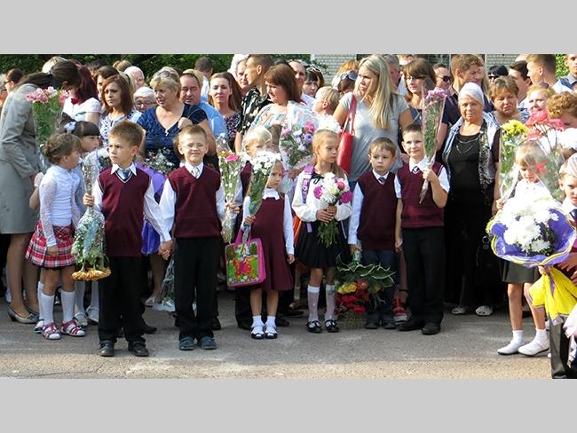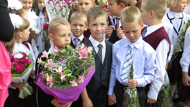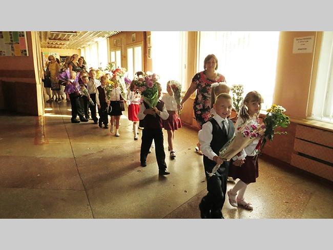 Аплодисментами школьная линейка встретила учеников первых классов. Они несколько растеряны, как правило, взглядом ищут в толпе своих родителей и ходят «гуськом» за первой учительницей. Для них – это непростой день. Похоже, многих из первоклассников родители подняли сегодня раньше обычного – они зевают, несмотря на напряжение первого учебного дня.