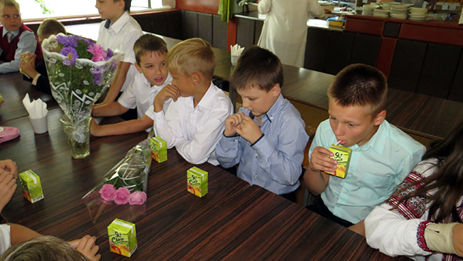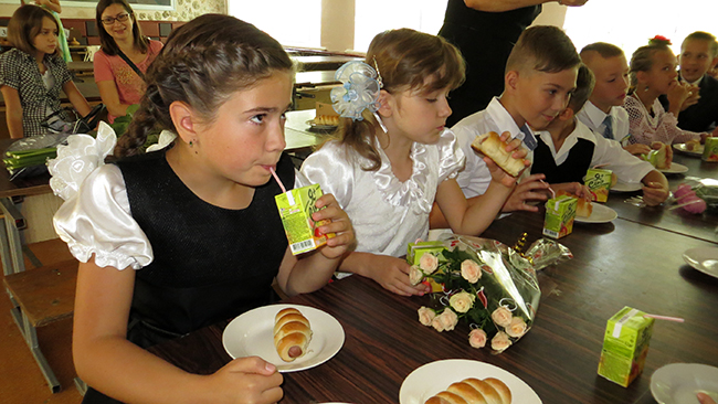 – Это мой восьмой выпуск, – говорит Елена Уланович, показывая на учеников четвертого класса, которые завтракают в школьной столовой. – Раньше у меня были 1-3 классы, а сейчас – с первого по четвертый. Это – мои выпускники. Они за лето сильно выросли: уже мужчины и девочки! Абсолютно самостоятельные люди! А в первом классе они были совершенно другими. У меня – очень хороший класс: шесть отличников! В классе – 26 детей. Я считаю, что это – среднее количесто. Много – это уже после 30 человек в классе. Вот, сейчас набрали первые классы, так там по 34 человека – это много. Что касается школьного питания, то я считаю, оно достаточное. У нас – вторая смена. Дети обедают дома, а тут – просто перекус.