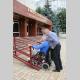 Как выяснилось по прибытии на место, швеллеры пандуса были рассчитаны на обычную ручную коляску и под автоматическую не подходили по ширине. К тому же маневренность усложнила расположенная рядом клумба.
